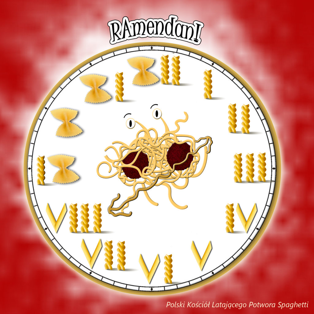 Nie należy mylić tego święta z muzułmańskim świętem Ramadanu, choć trzeba przyznać, że czasowo oba święta są zbieżne. W tym czasie staramy się jeść dużo spaghetti i przy takim posiłku rozmyślamy nad starymi dobrymi czasami. Przy tym chwalimy Jego Makaronowatość za to jak wiele udało nam się osiągnąć od tego czasu za Jego sprawą.